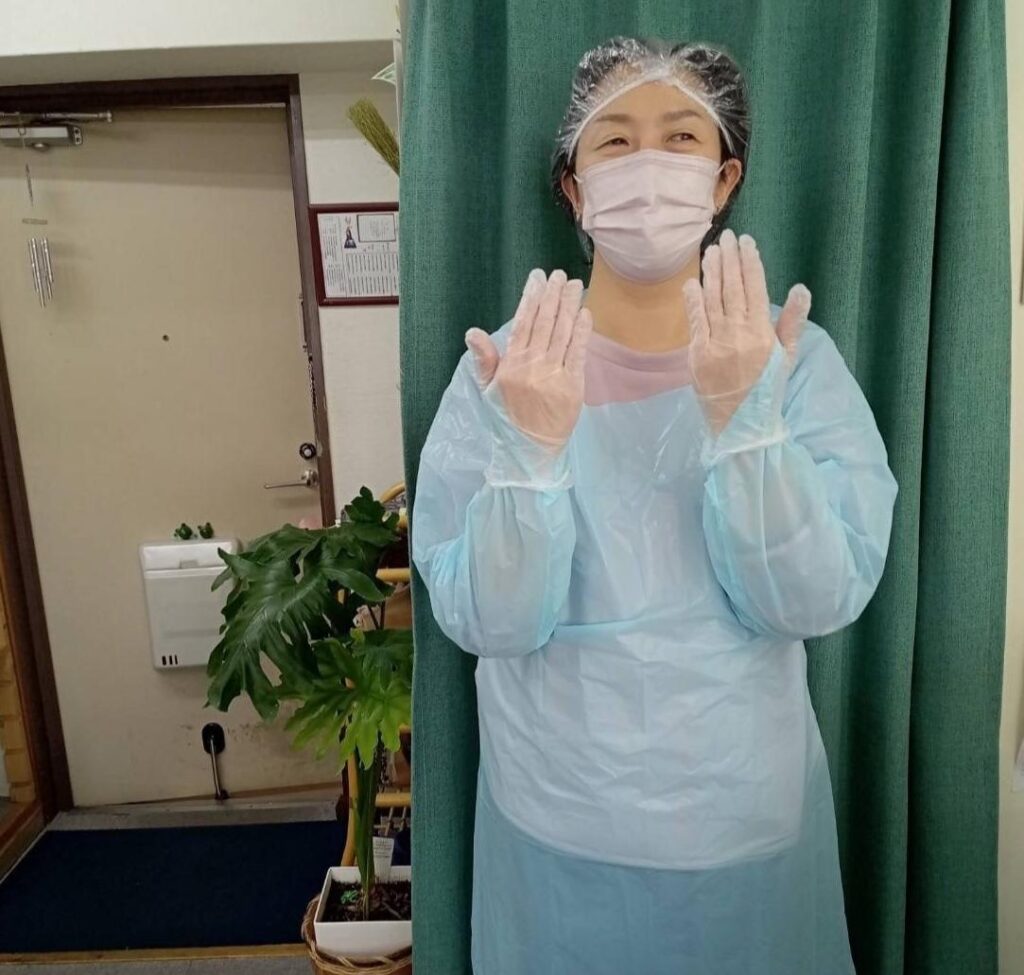 防護服着脱の研修も行いました。