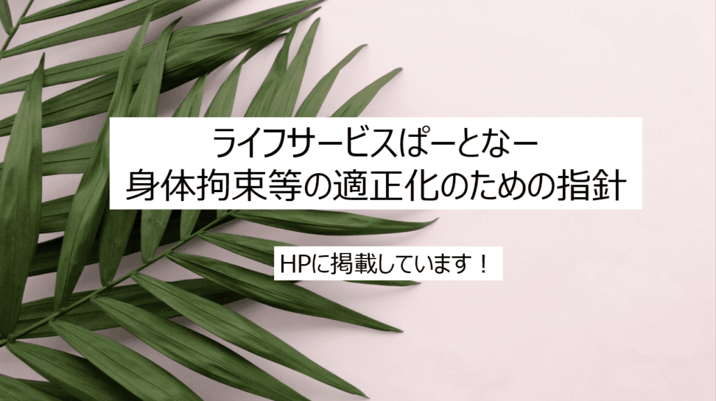 ※緊急時や無負えなかった理由を記録し、身体拘束の適正化指針も記録として提出を求められる。