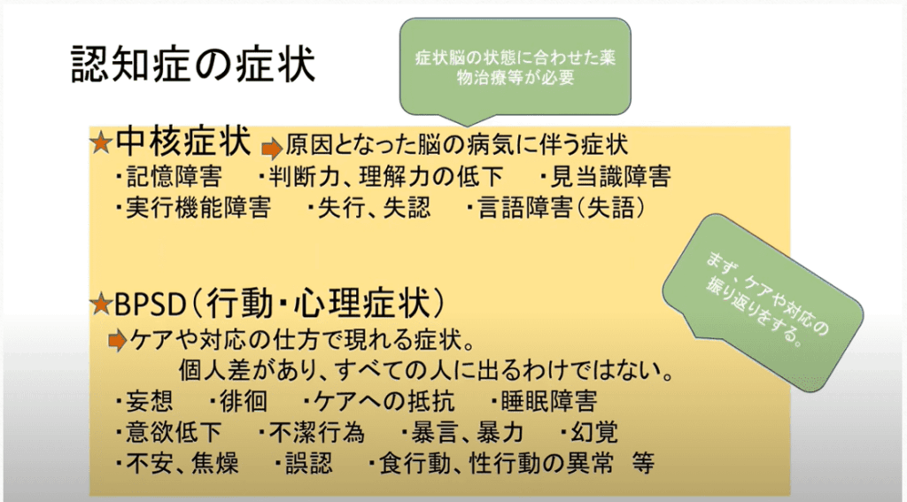 ① 中核症状やBPSDについて